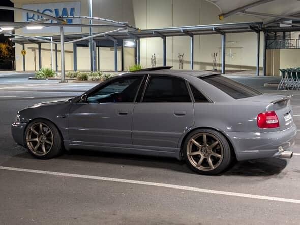 18x9.5 +22 5x114.3 DORI NANA in Bronze on a Audi drift car