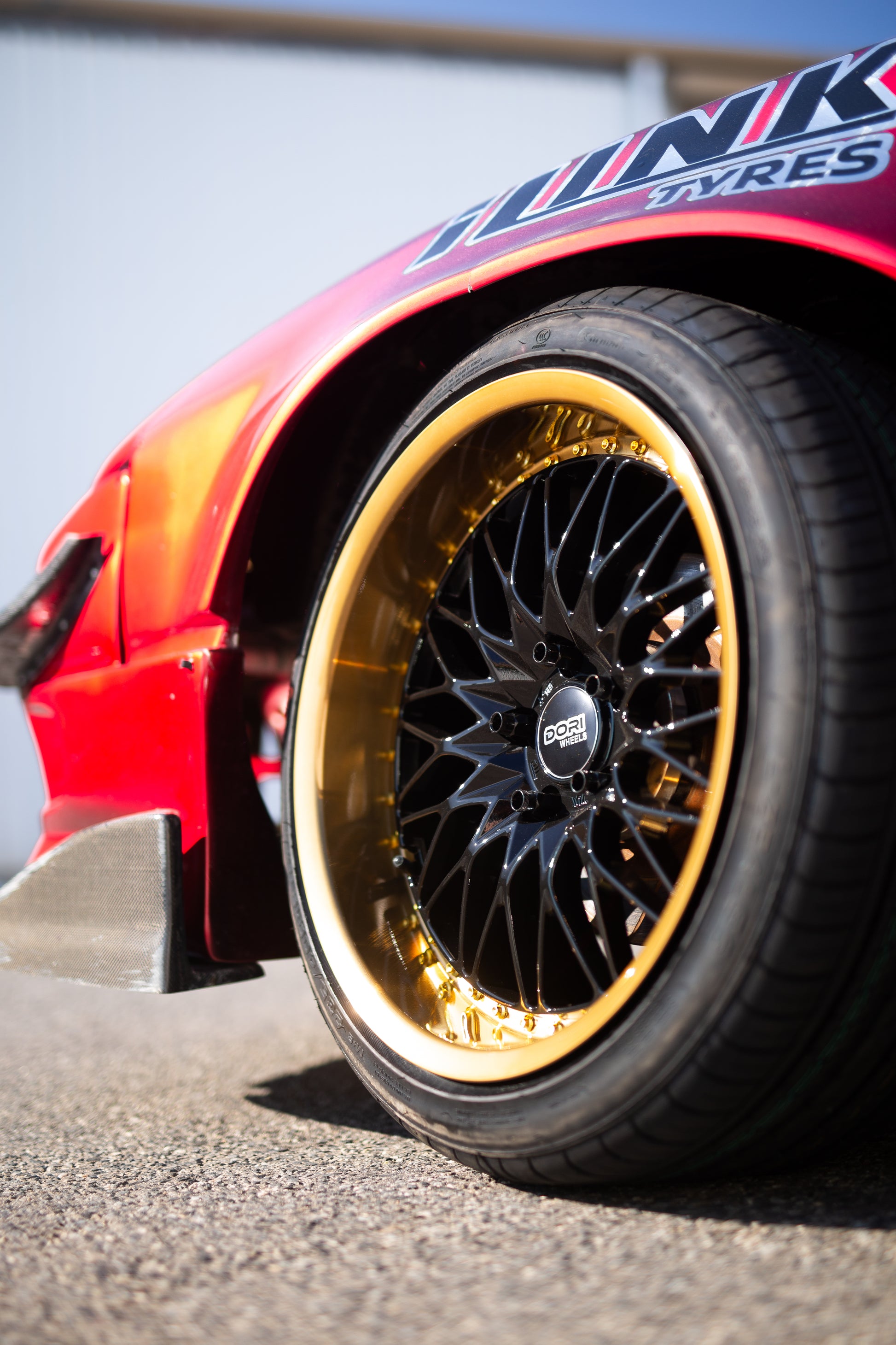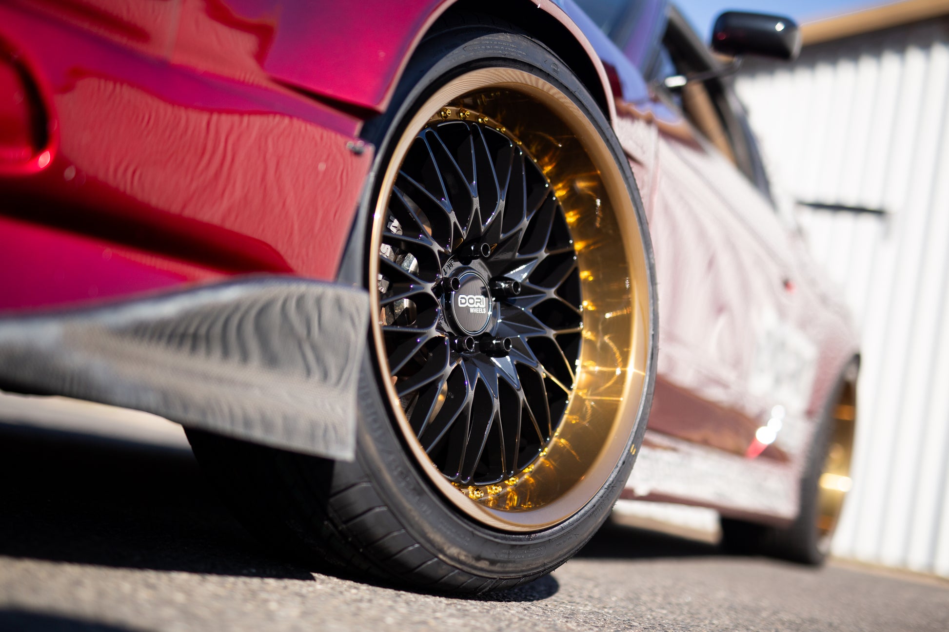 18x9.5 +22 5x114.3 DORI SAN in Black with Bronze lip on a Nissan Sonvia